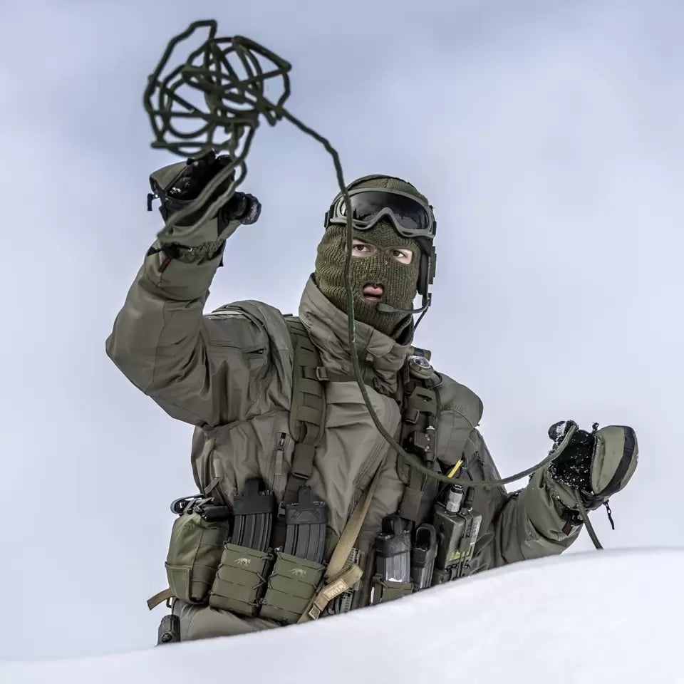 Kestävä, kylmien olosuhteiden takki, jossa sisään rullautuva huppu, tuulen- ja vedenhylkivä pintamateriaali sekä paksu G-LOFT®-eriste ääripakkasiin.