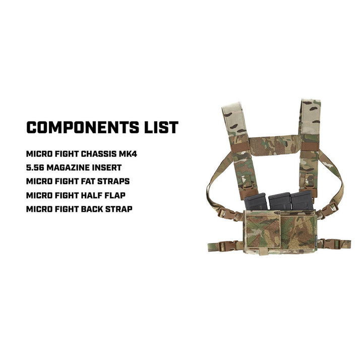 Spiritus Systems Micro Fight Chassis Mk4 on suunniteltu maksimoimaan toiminnallisuus kompaktissa paketissa. Chassis tarjoaa pehmeät loop‑kentät kummassakin osastossa, jolloin voit rakentaa kokoonpanon käyttäen erilaisia lipas‑ ja utility‑insertejä (5.56×45, 7.62×51, SMG‑ ja pistoolilippasinsertit). Mk4 muuntautuu nopeasti matalaprofiilisesta chest rigistä täydeksi placardiksi‑ratkaisuksi plate carrierissa — irrota sivusoljet ja kiinnitä rear hook field ‑kentän kautta.